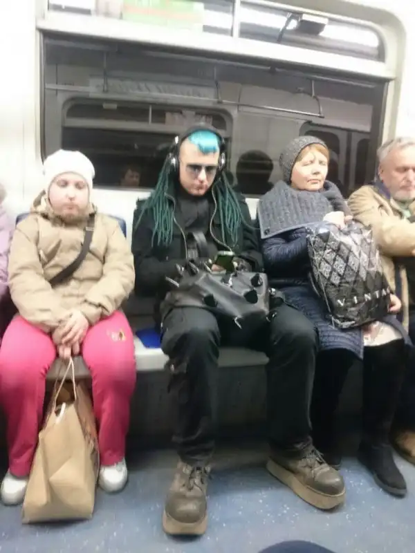 Очередная подборка фотографий странных и модных персонажей, которых можно встретить в российском метро.