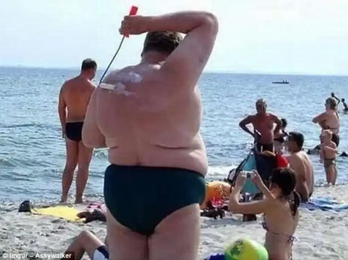 Лайфхак: мужчина наносит солнцезащитный крем валиком и демонстрирует отменную гибкость