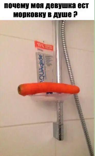 Почему твоя девушка есть морковку в душе? Селедки под рукой не оказалось.