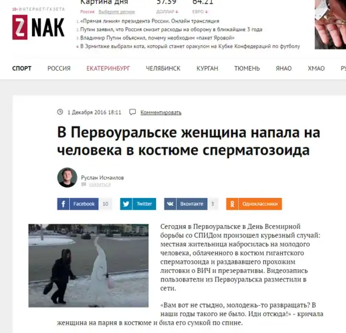 1. Использовать костюмы нужно с особой осторожностью! Так, Ведущего Дождя Павла Лобкова, который снимал сюжет в необычным наряде, задержали за нарушение общественного порядка