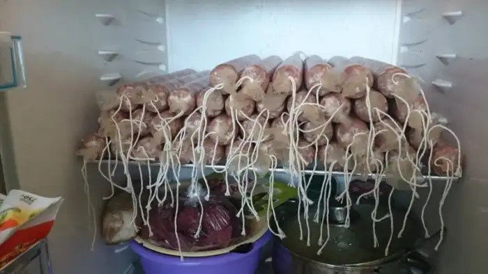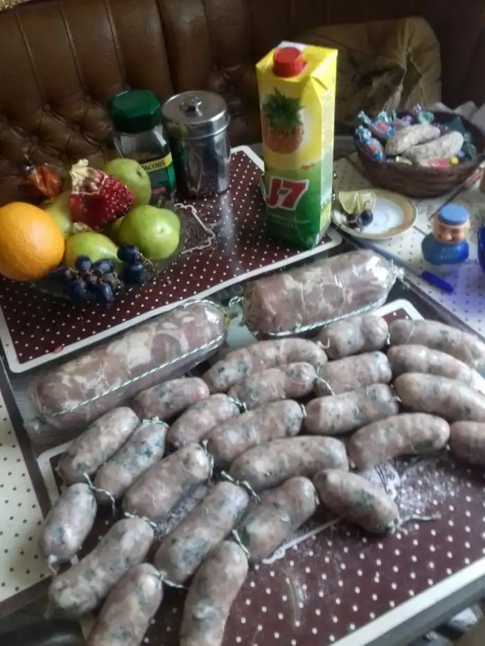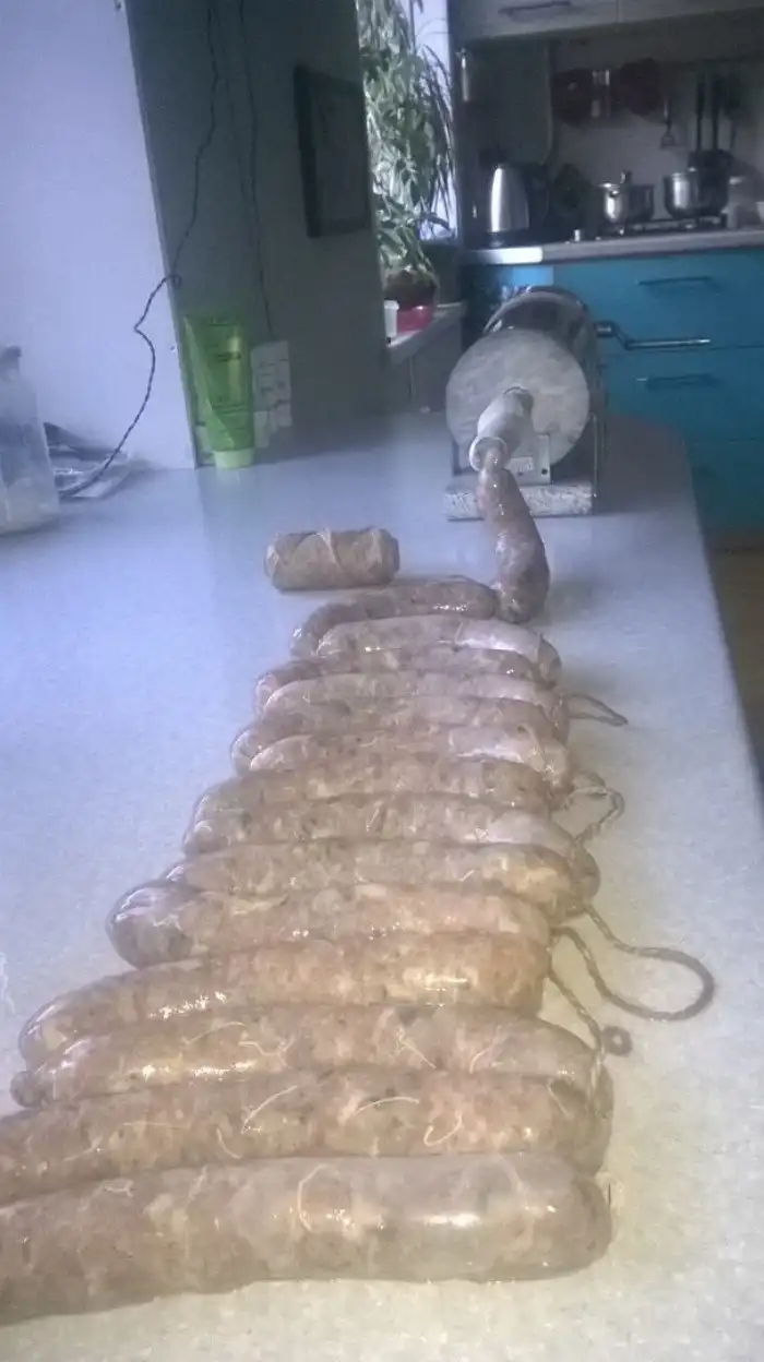 По деньгам затратил 380 р. за трубу из нержавейки, остальное подручные материалы по объёму 3,5 литра. Входит 2,5-3 кг. фарша. Колбаски получаются вкуснее, нежнее, фарш не "перемятый" мясорубкой.