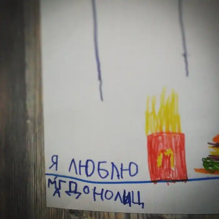 Только посмотрите, сколько любви к Макдональдсу в этой детской подписи)