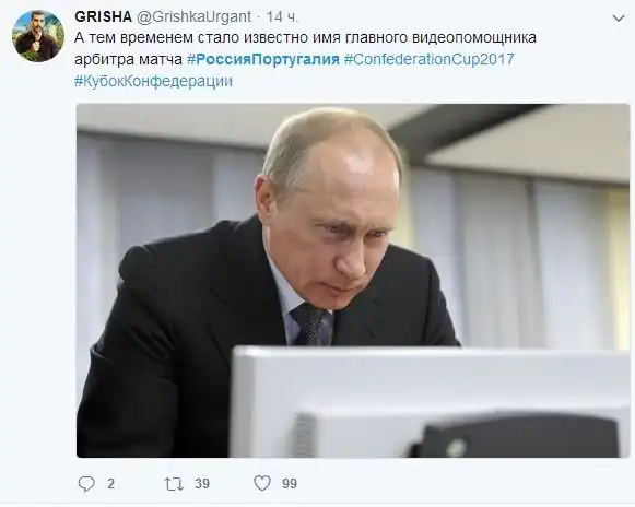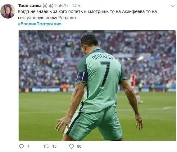 На прошедшем вчера вечером, 21 июня, на стадионе «Открытие Арена» в Москве в рамках Кубка конфедераций матче Россия - Португалия наша сборная уступила с минимальным счетом 0:1. Единственный гол был забит на 9-й минуте матча португальским нападающим Криштиану Роналду. Многие ожидали куда более разгромного счета, однако наши футболисты выглядели вполне достойно и даже создали несколько опасных моментов. Реакция пользователей сети на этот матч последовала незамедлительно.