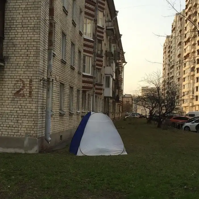Вячеслав расширяет палатку на улице