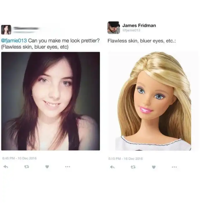 - Можешь сделать мое лицо меньше чем у моего БФ? - Сделано!