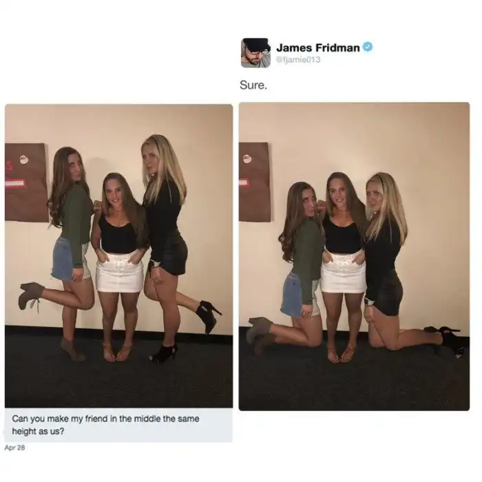 - Можешь сделать подругу в центре такого же роста как мы? - Конечно.
