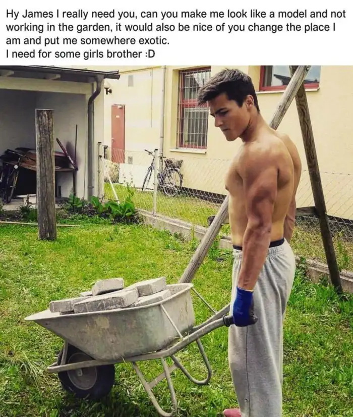 - Ты мне очень нужен! Можешь сделать как будто я модель и не работаю в саду, и неплохо бы переместить меня в какое-нибудь экзотическое место