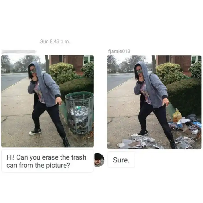 - А можешь убрать урну с фото? - Ага