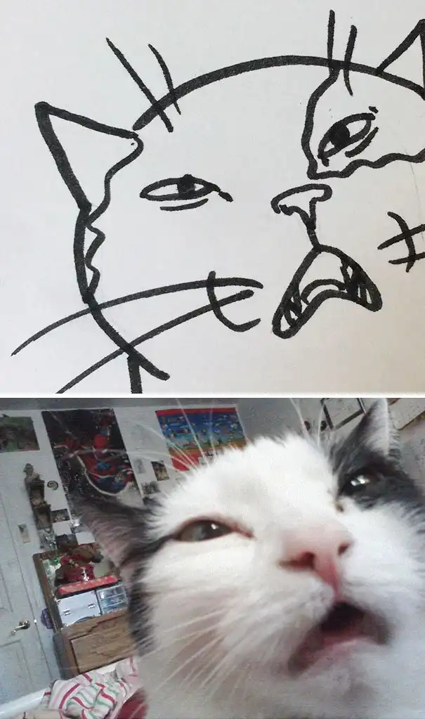 Учительница ИЗО говорила, что вы не умеете рисовать? Над вашими работами смеялись одноклассники? Дескать, задумка далека от реальности? А вы взгляните на эти абстрактные рисунки котиков и их настоящие воплощения! Бразильская художница Элоиса уверена, что и у вас есть талант.