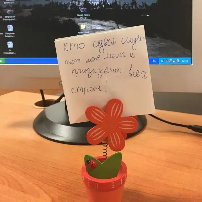 Вангую, минут через 5 этот стол был весь украшен разноцветными стикерами