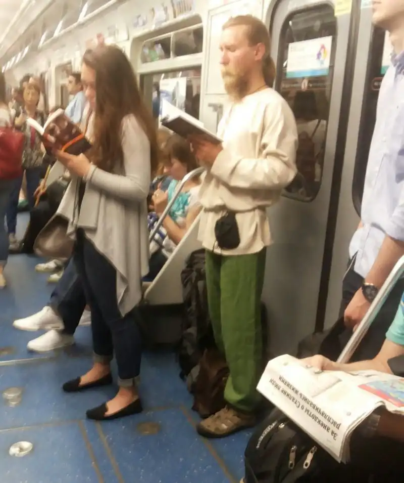 Очередная подборка фотографий странных и модных персонажей, которых можно встретить в российском метро.