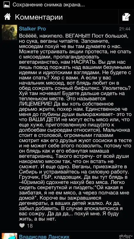 Если мясоед за день не потроллил ни одного вегана - значить день прошел зря