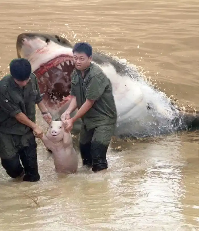 Счастливая свинья, спасенная от наводнения стала новой звездой битвы фотошоперов