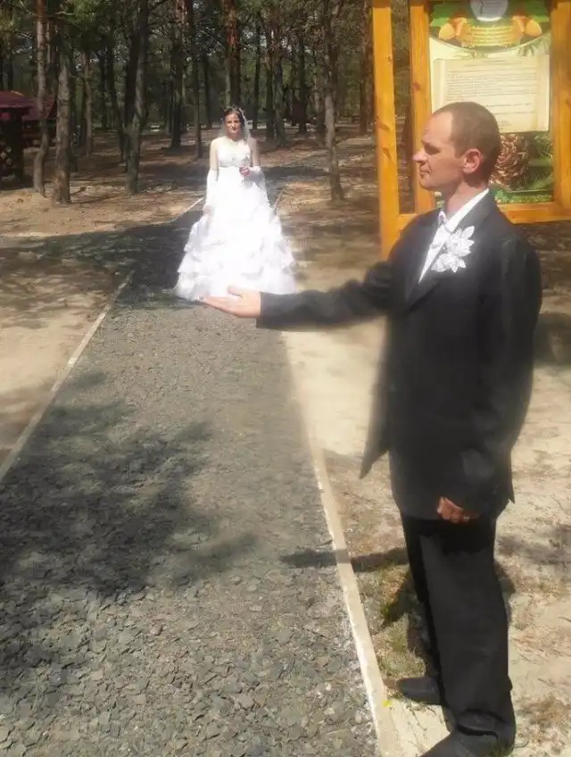 Вообще игры с перспективой у свадебных фотографов подразумевают два основных сюжета: