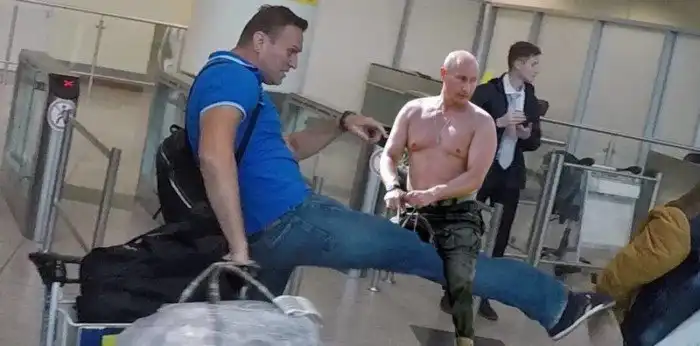 Увидев фотографию с пинком Навального, активизировались абсолютно все любители фотожаб и интернет-тролли