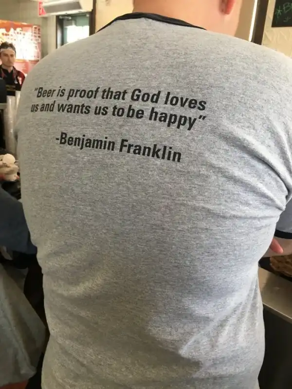 "Пиво является доказательством того, что Бог любит нас и хочет, чтобы мы были счастливы. Бенжамин Франклин".