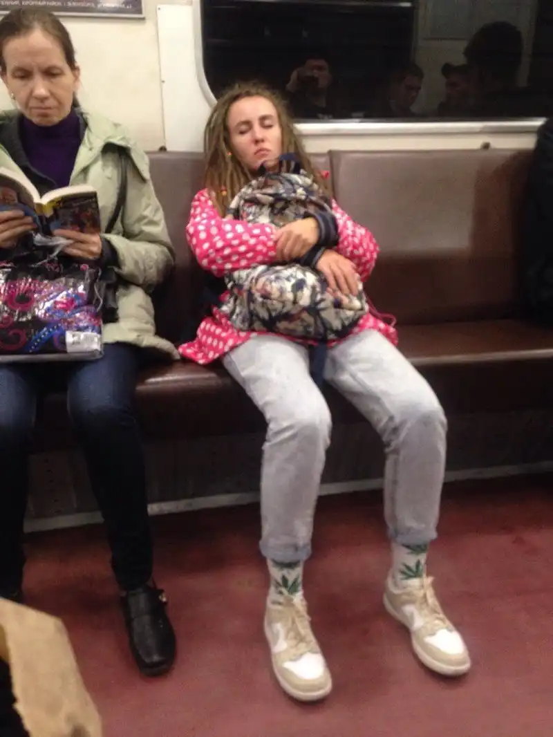 Очередная подборка фотографий странных и модных персонажей, которых можно встретить в российском метро.