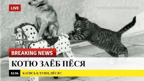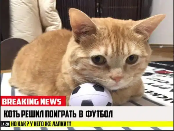 «Коть решил поиграть в футбол», «Пёся недоволен положением дел»: В соцсети «ВКонтакте» 13 сентября появилась группа «Важные новости», в которой публикуются фейковые скриншоты из срочных телерепортажей о животных — кошках, собаках, мышах, кроликах и воспитанном гусе...