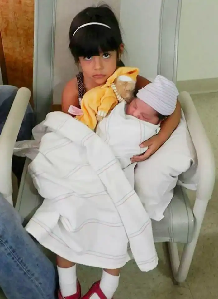 Первые фото недавно родившегося младенца. Хорошо бы обратить внимание на выражение лица старшего братца малыша