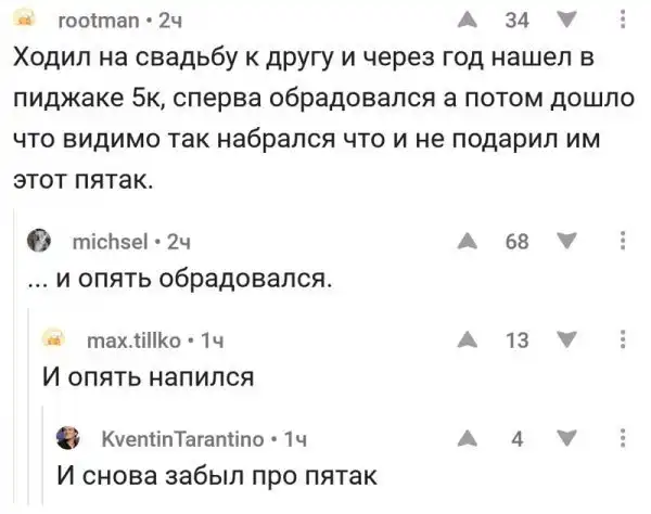 Раз упал, девушка ему:" Мужчина, вы пьяны!". Мужик:" Ну и что?". Два упал. Девушка:" Мужчина, вы пьяны!".