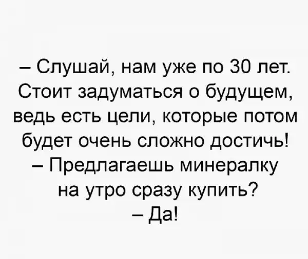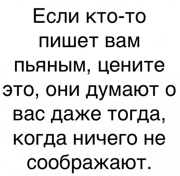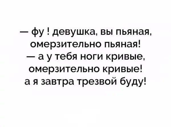 Девушка (на "автомате"):" Ну и что?" Мужик:" А я завтра трезвый буду!".