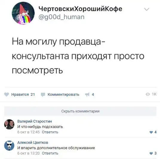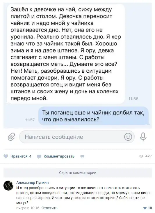 когда представил себе лицо этого гопника упал лицом на клавиатуру. жена крутит пальцем у виска....