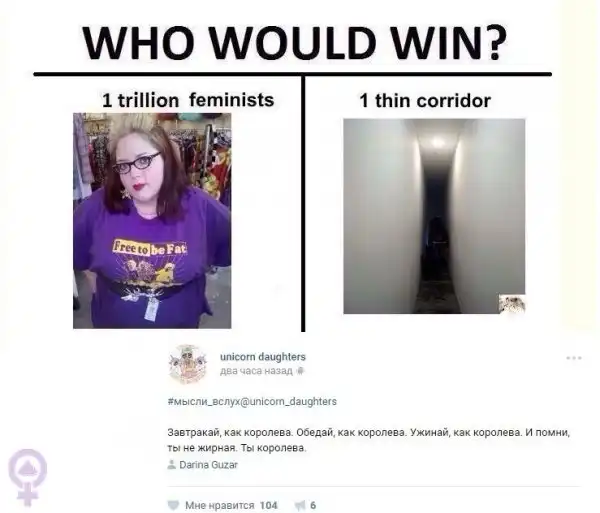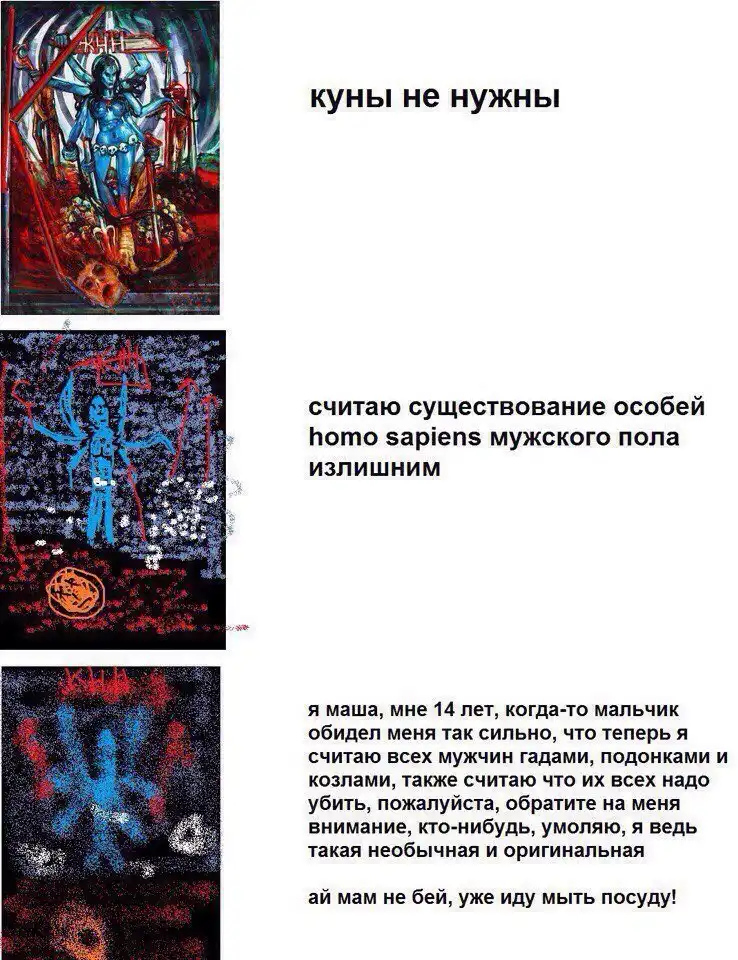 Но современные феминистки (в особенности радфем) почему-то решили, что суть в тупой ненависти к противоположному полу и скатились до притеснения (слава богу только на словах) по гендерному признаку.