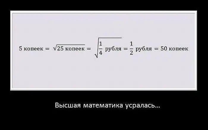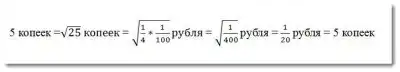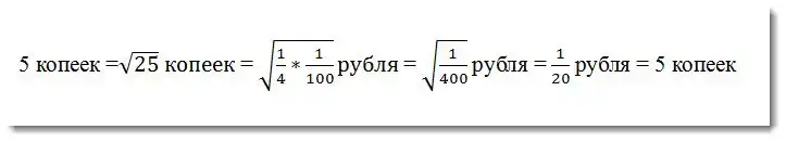 тут все верно, но забыли корень из рубля взять .. если мне не изменяет память рубль это 100 коп, корень 10 итого 1/2=0,5 на 10 коп. получаем свои 5