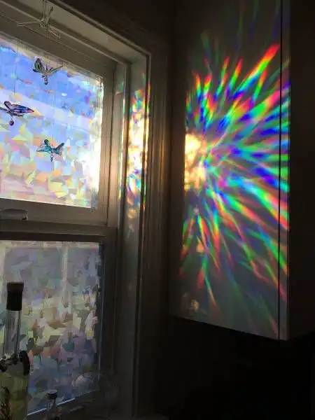 а это на окно какая-то особая витражная пленка наклеена, чтобы такой красивый радужный узор на стене получился? Тоже так хочу.