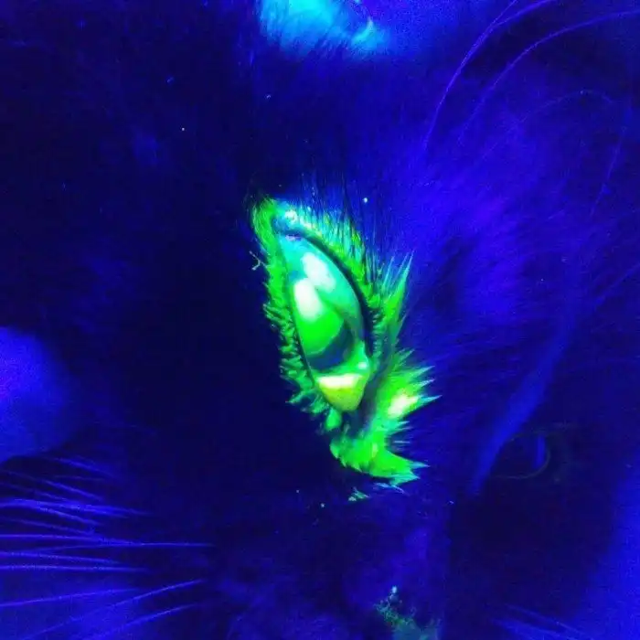 Некоторые ветеринарные манипуляции выглядят загадочно. Это флюоресеиновый тест в ультрафиолете