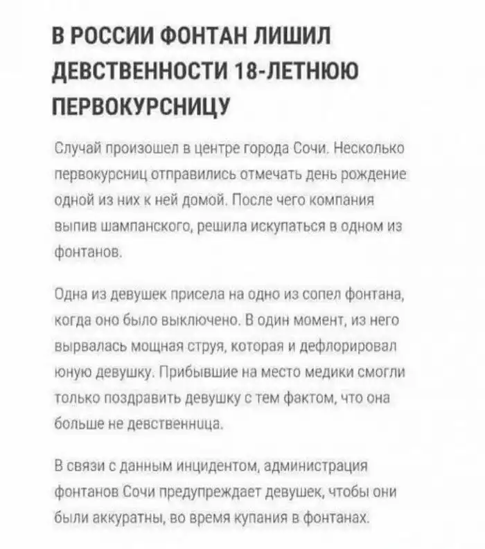 В средневековых книгах говорится, что слезы девственницы - важнейший ингредиент магических эликсиров. Теперь понятно, почему перевелись все маги и волшебники.