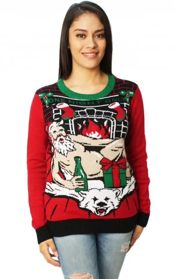 В северной Америке на Рождество принято дарить свитера с картинками на зимне-рождественскую тему. В этом году хитом продаж стали вязанные изделия с "плохим Сантой". Американцы оказались без ума от пьяненького Санты Клауса, гоняющего в стрингах топором оленей. Этот и другие, не менее интересные сюжеты, можно рассмотреть в этом посте.