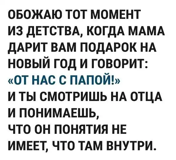Ага папы они понятия не имеют. Что в подарках, они просто деньги дают маме.