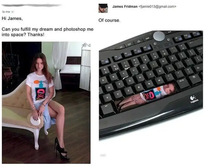 Его зовут Джеймс Фридман, и он известен в сети как гуру фотошопа и главный фотошопер-тролль. Когда люди просят его обработать фотографию, никогда не знают, чего ожидать в итоге. Но Фридман делает настоящие фотобомбы! Посмотрим на самые яркие работы мастера.