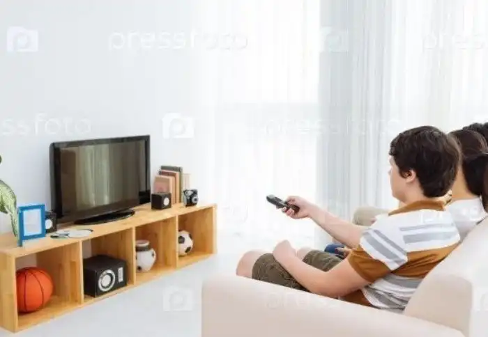 1. Семья смотрит не подключенный телевизор, но жена начала что-то подозревать