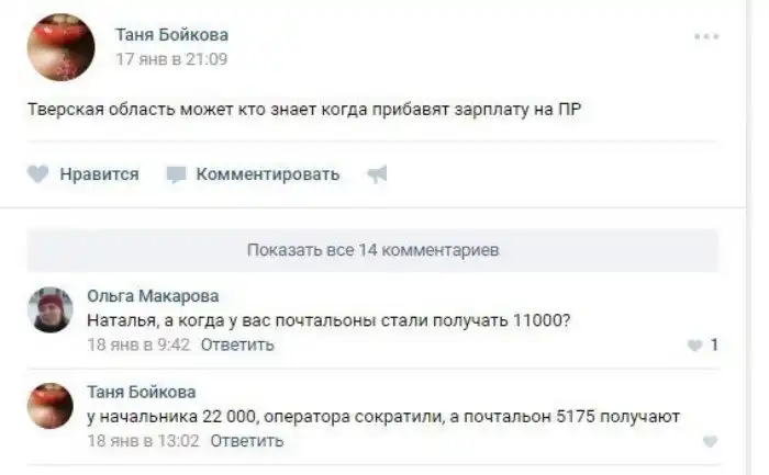 В соцсетях есть неофициальные сообщества, где общаются сотрудники Почты России. Отговорить от трудоустройства, поплакаться над мизерной зарплатой и поздравить с увольнением - главные миссии этих групп