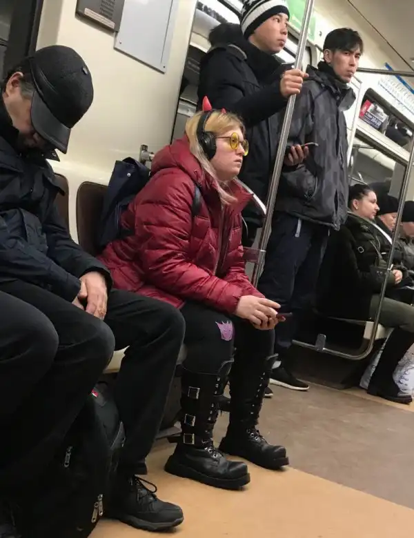 Очередная подборка фотографий странных и модных персонажей, которых можно встретить в российском метро.