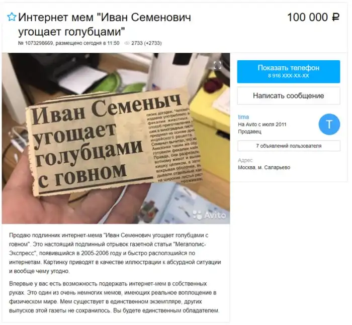 Есть на Avito и объявления для настоящих фанатов. Обратите внимание на стоимость товаров. Вы ведь даже подумать не могли, что эти вещи могут столько стоить