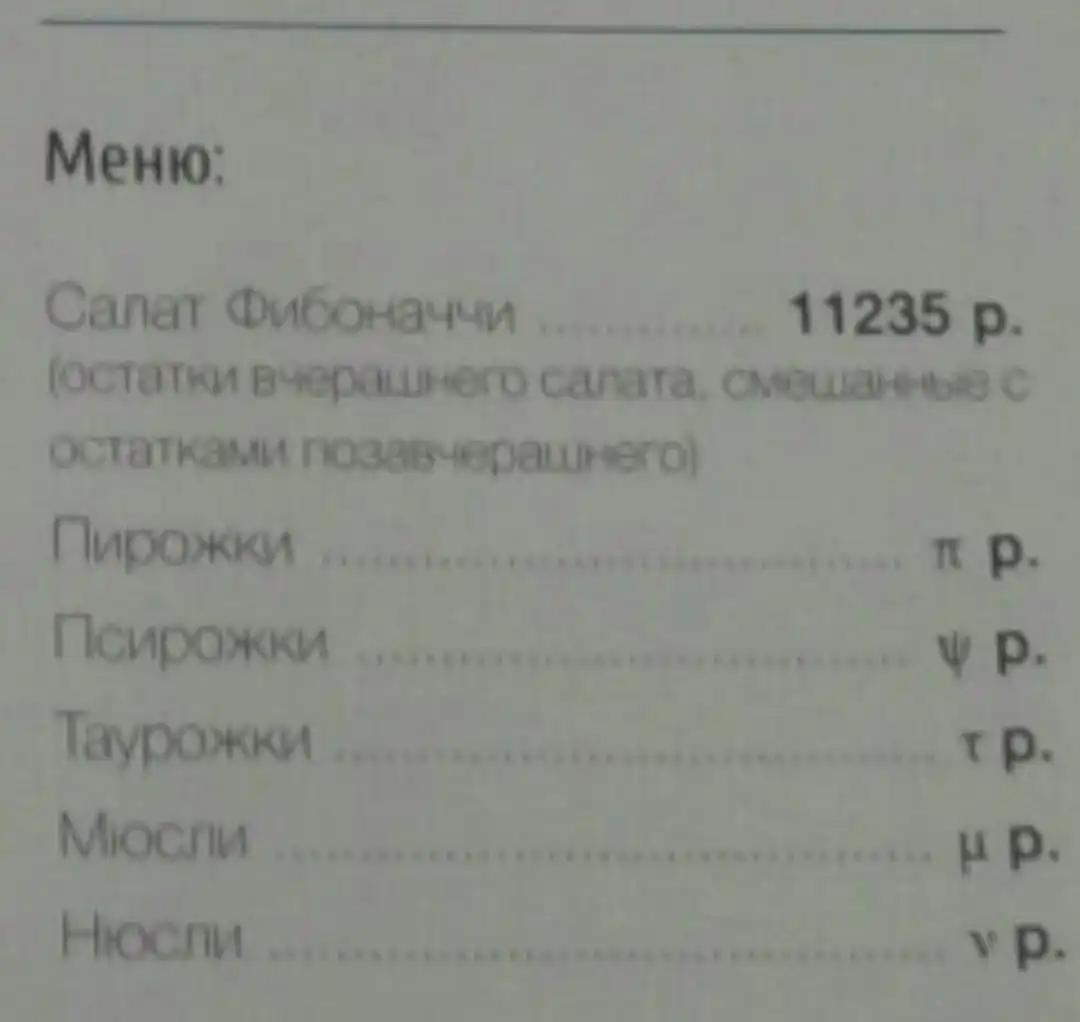 Меню в общаге студентов физмата!
