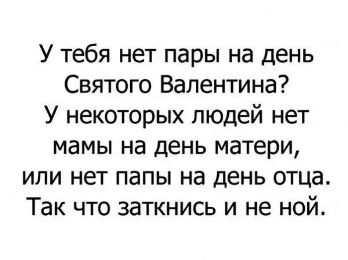14 февраля — это тот самый день, когда извращенцев называют романтиками. У вас нет пары? Прекрасный повод в комментариях заявить об этом!