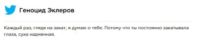 Одними из самых популярных посланий в русскоязычном Твиттере стали те, которые пародируют царящую в День всех влюбленных обстановку любви и добра. Авторы оставляют твиты, передающие противоречивые чувства по поводу своих расставаний с любимыми.