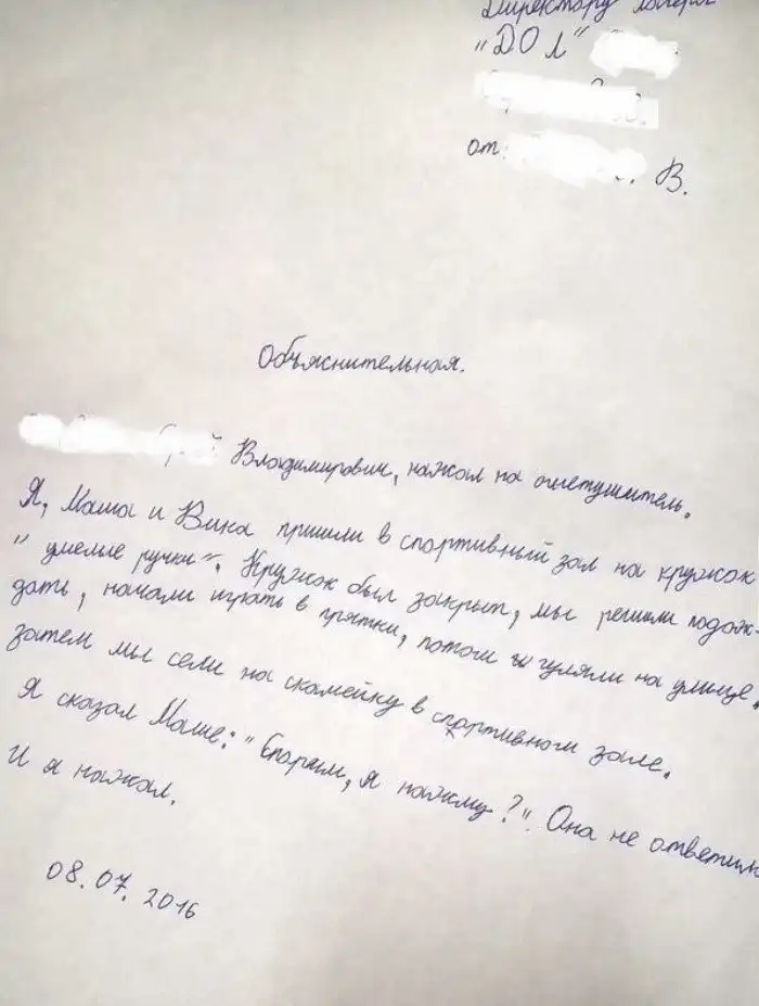 Объяснительные от детей