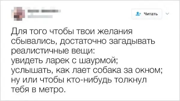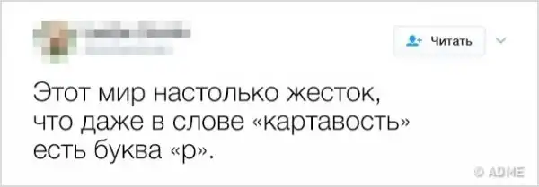 Человечество делится на две половины: когда все идет наперекосяк, для первых это повод жаловаться и ныть, а для вторых — извлечь урок и написать смешной твит. Мы ведь все здесь из второй половины, верно?