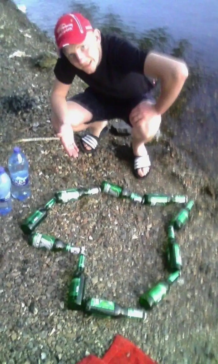 Потратив все деньги на алкоголь, ростовчанин не смог подарить цветы любимой и выложил сердечко из пустых бутылок