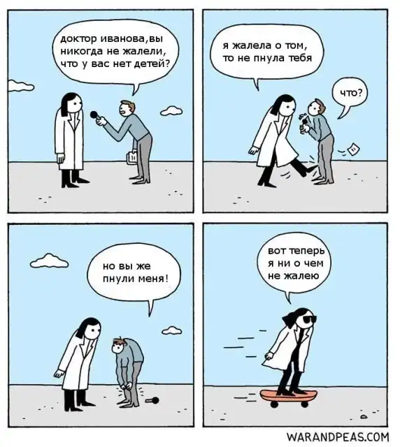 В 2011 году художники Джонатан Кунц и Элизабет Пинч запустили проект комиксов под названием «Война и мир». Это жесткий черный юмор в картинках, у которого есть множество поклонников по всему миру. На сегодняшний день этими комиксами фанатеют десятки тысяч человек. Может, и вас вдохновят эти работы.