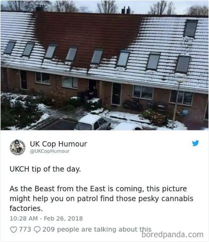 12. "Подсказка дня: надвигаются морозы, так что эта картинка поможет вам выявить эти чертовы фабрики по выращиванию марихуаны"