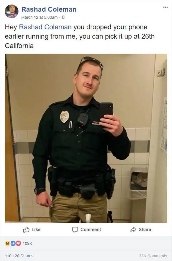 9. "Эй, Рашад Коулман, ты потерял свой телефон, когда убегал от меня. Можешь забрать его в 26-м отделении полиции"