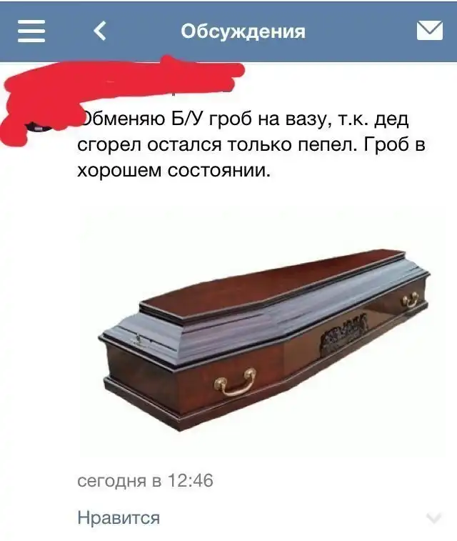 Количество объявлений, посвященных продаже б/у гробов, просто поражает