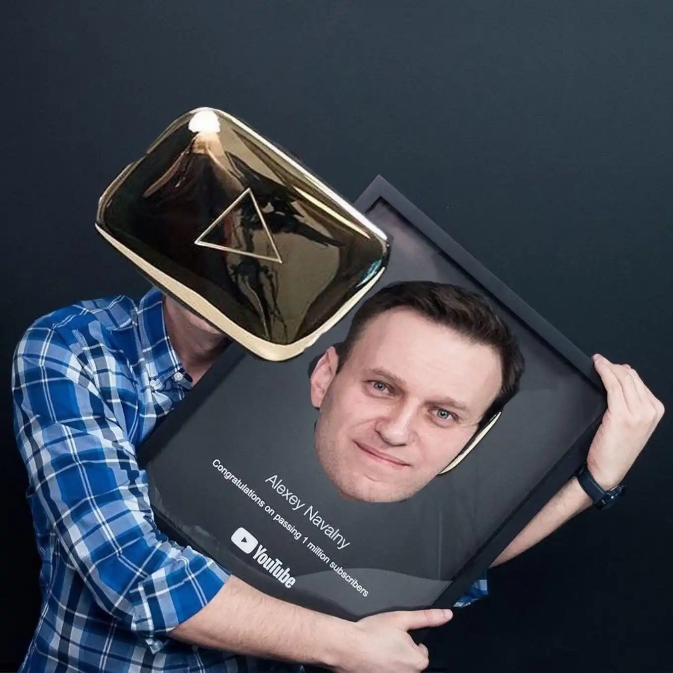 Фотожабы: Навальный обнимает «золотую кнопку» YouTube