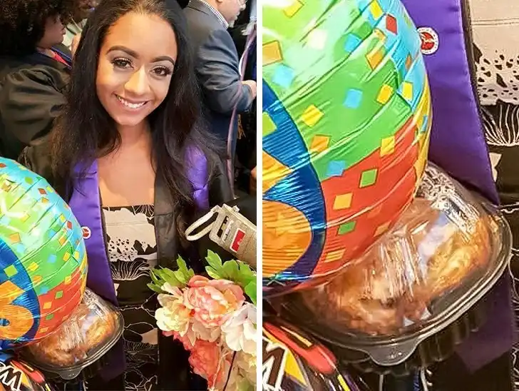 «Большинство выпускников получают цветы и воздушные шарики. Мои родственники на вручение диплома принесли мне жареную курицу»